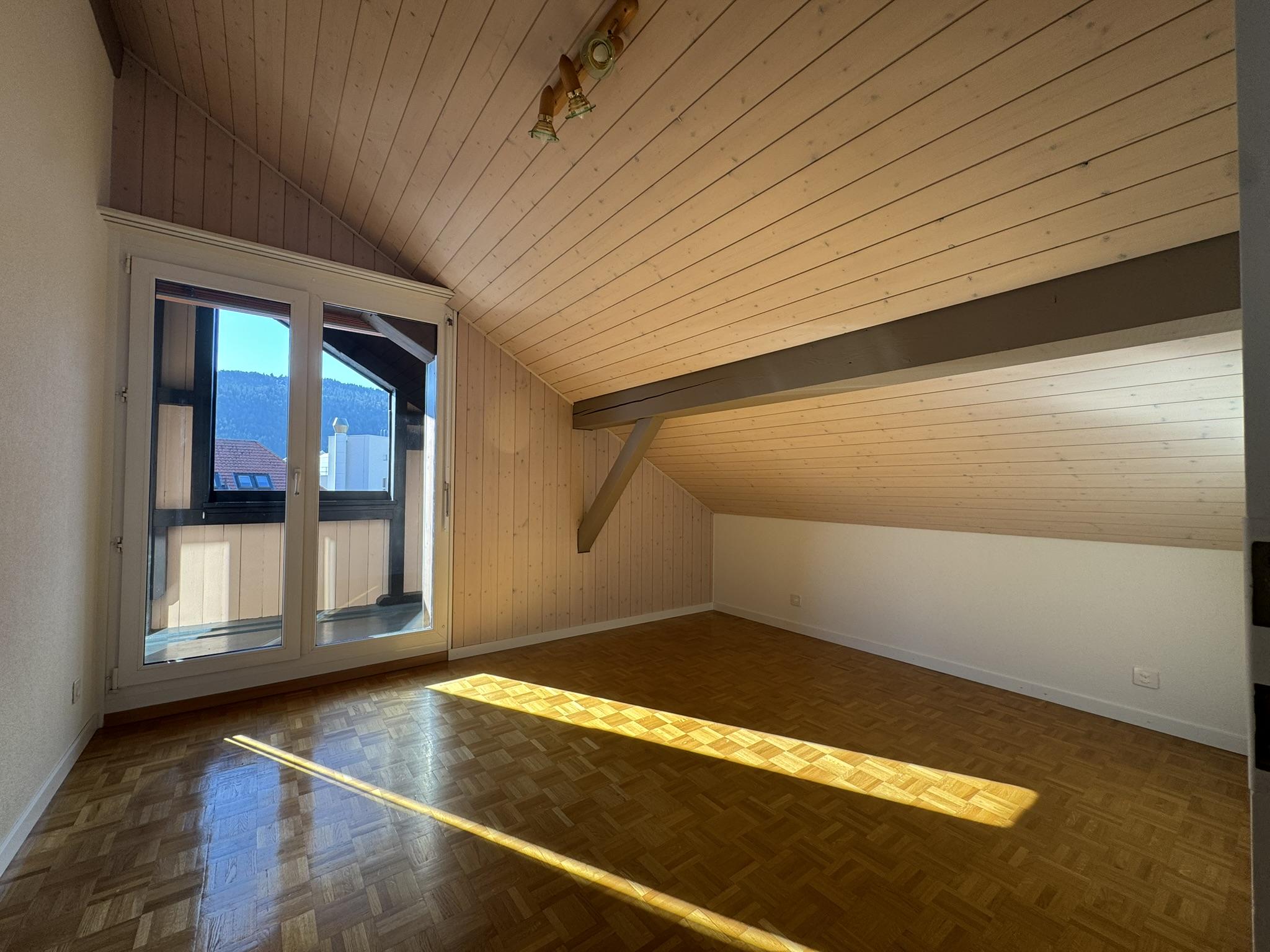 Avec 115 m² habitables et une belle hauteur sous plafond, le bien bénéficie d’une distribution fonctionnelle et agréable. Son exposition sud-est assure un ensoleillement optimal tout au long de la journée, tandis que la vue dégagée sur le Creux-du-Van apporte une réelle sensation de sérénité.