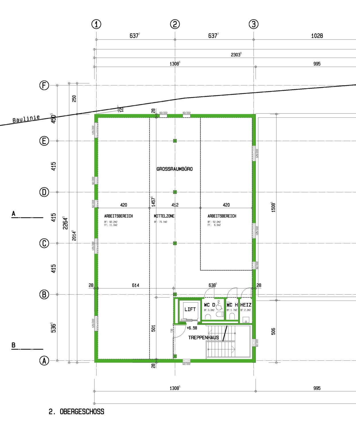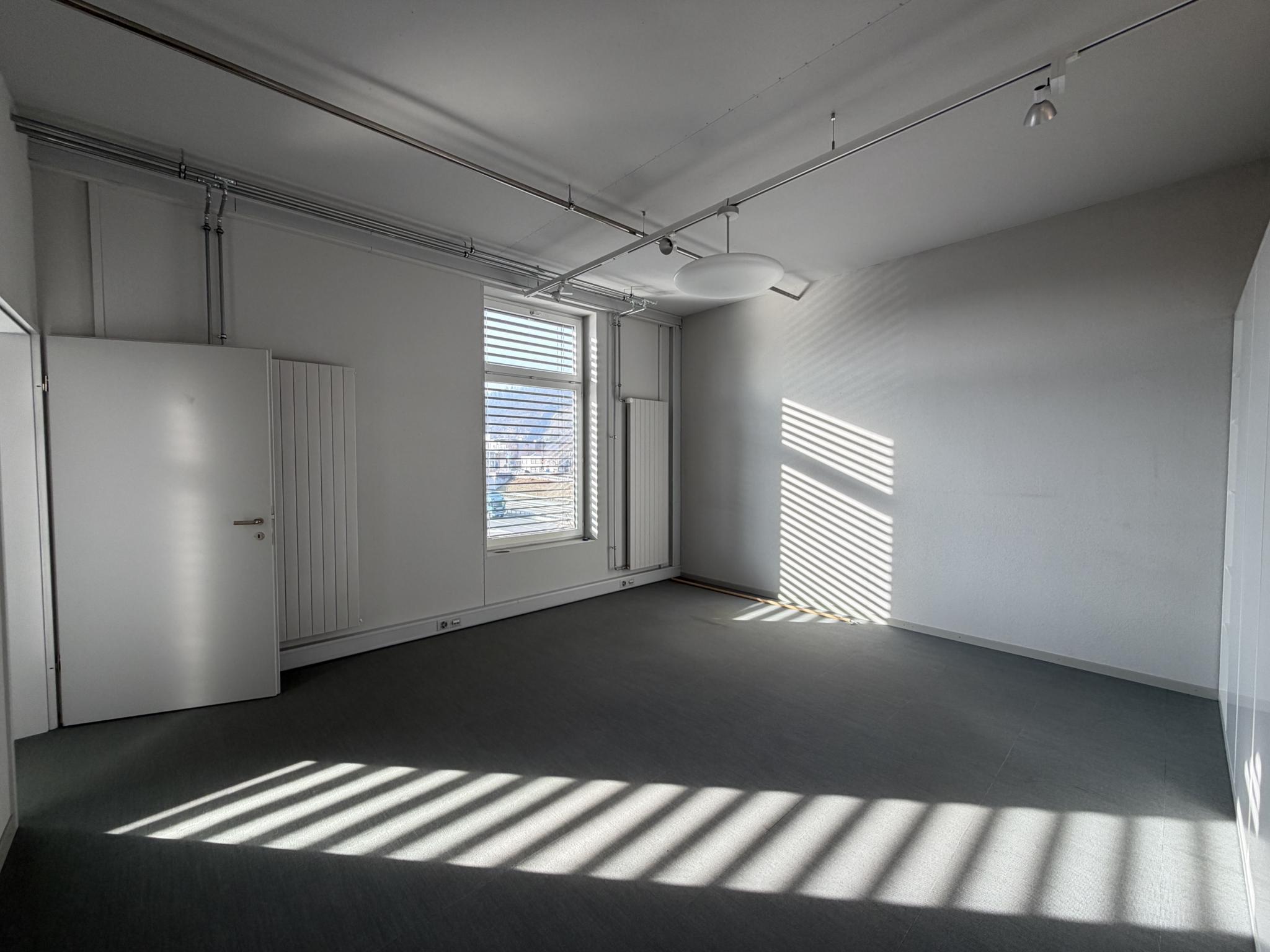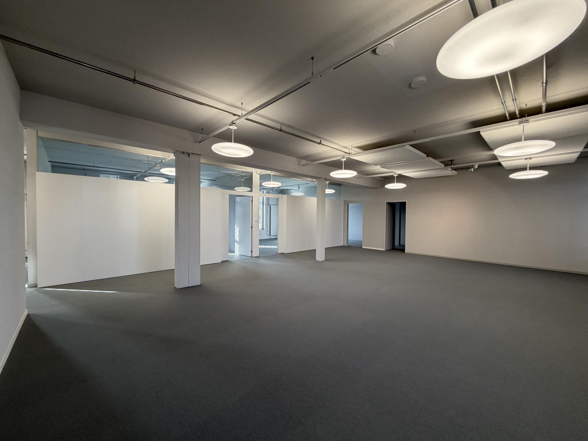 Die Fläche von ca. 215 m² befindet sich im 2. Obergeschoss und wird zu einem monatlichen Mietzins von CHF 2’827.– angeboten, zuzüglich CHF 510.– Akonto Nebenkosten. Sie umfasst einen grosszügigen Empfangsbereich, einen Open-Space, drei abgeschlossene Büroräume mit Einbauschränken sowie zwei WCs.