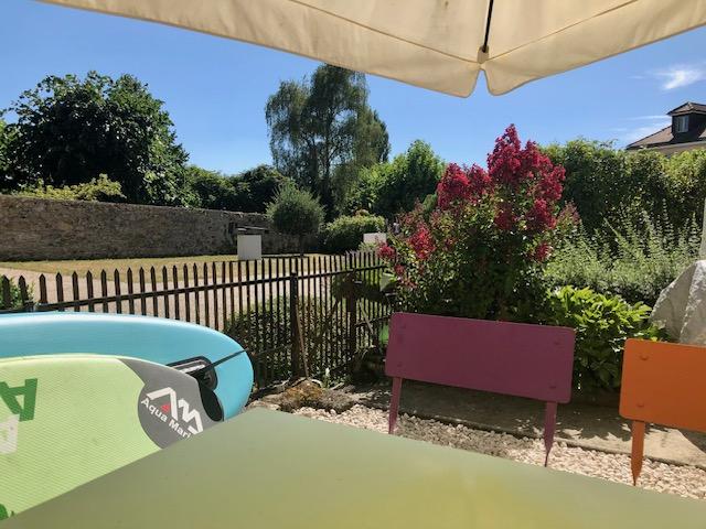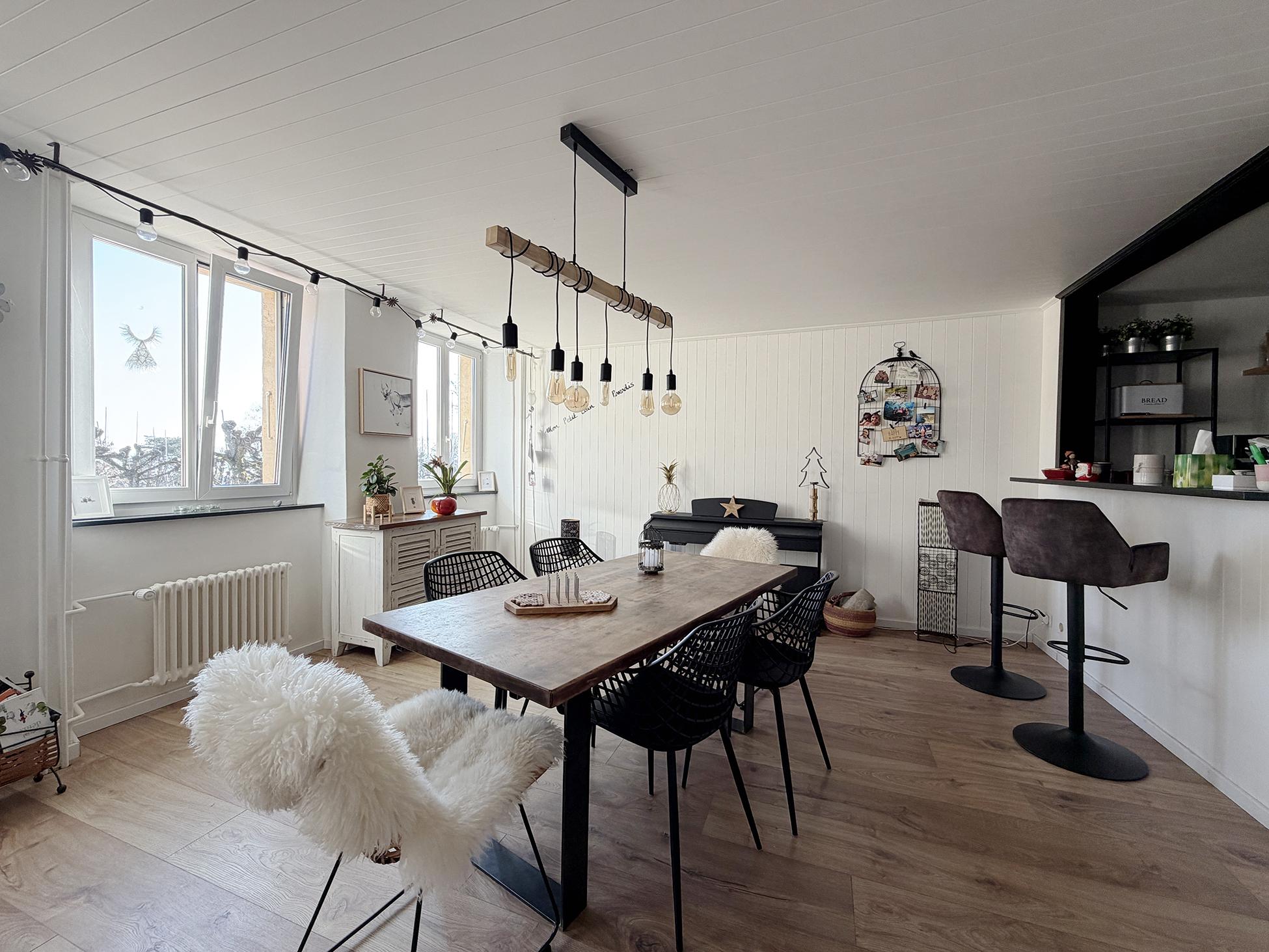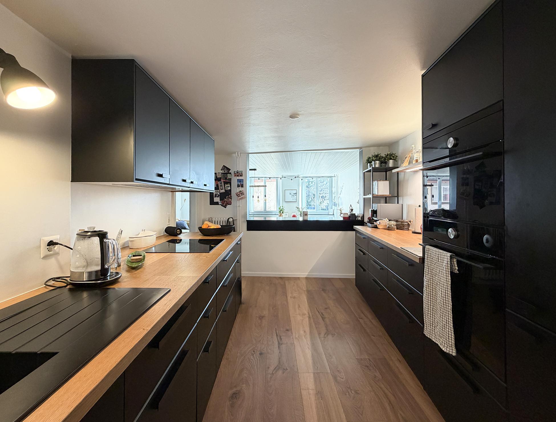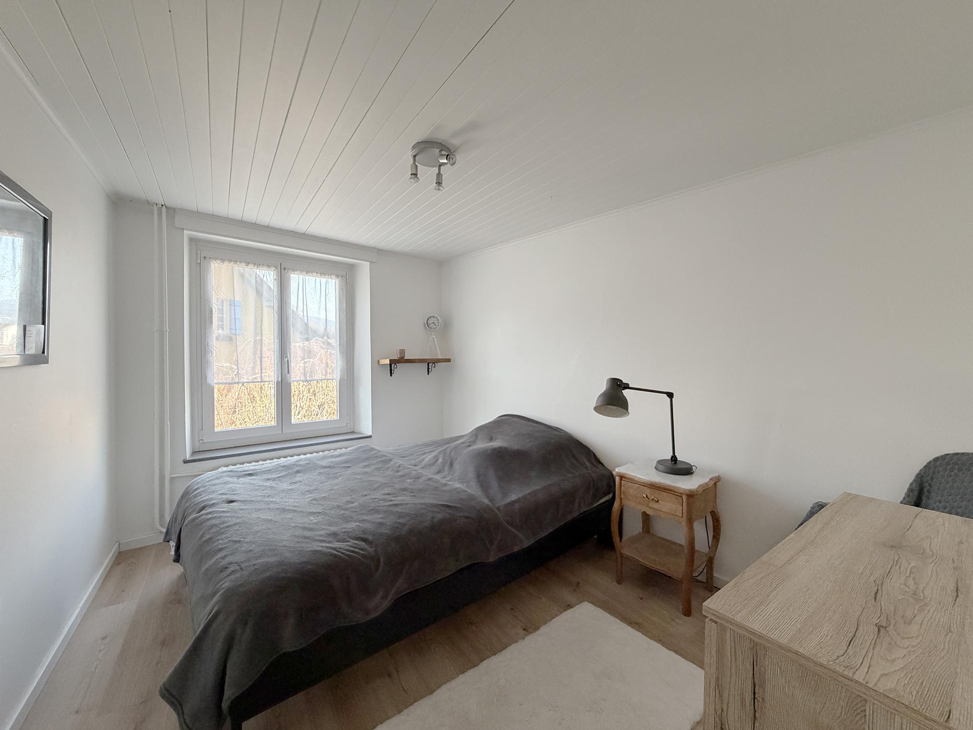 Im ersten Obergeschoss befinden sich eine vollständig renovierte, offene Küche, ein Essbereich mit Cheminée sowie ein ebenfalls renoviertes Badezimmer.