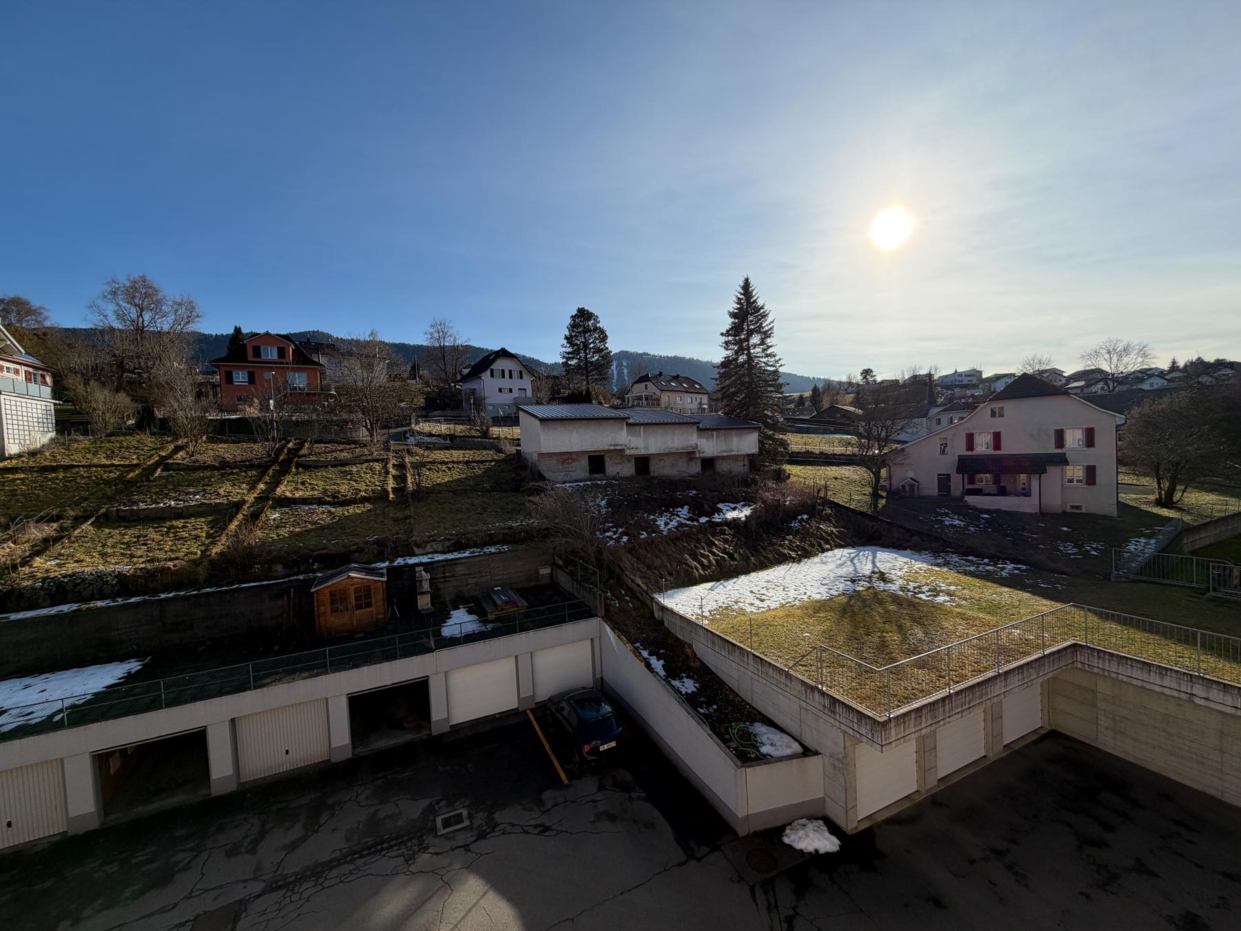 Ein Balkon von 4 m² lädt dazu ein, die sonnigen Tage zu geniessen. Garage und Aussenparkplatz optional. Dachsanierung erforderlich.